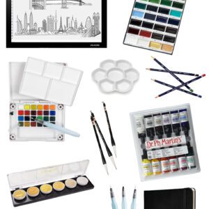 - Sakura Koi Field Sketch Kit – I recommend this palette to all beginners because the color quality is fantastic and it is small enough to take anywhere with you. It comes with it’s own mixing palette and a water brush so you can paint anywhere. Sakura makes great quality art materials, so any of their products is a great buy. You can also get this palette in a 12 color set, 36 color set, and 48 color set!