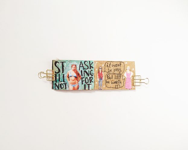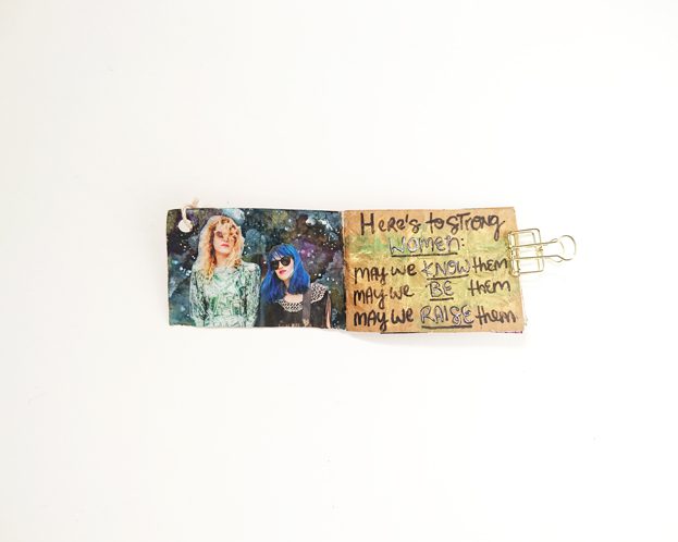 This month’s tiny journal started with a fire and it kept me going the whole time. The topic: women. My opinions and ideas regarding women have become significantly more political as time has gone on, especially since having two daughters of my own. While this mini art journal itself isn’t very political in its visuals, the motivation behind it is.