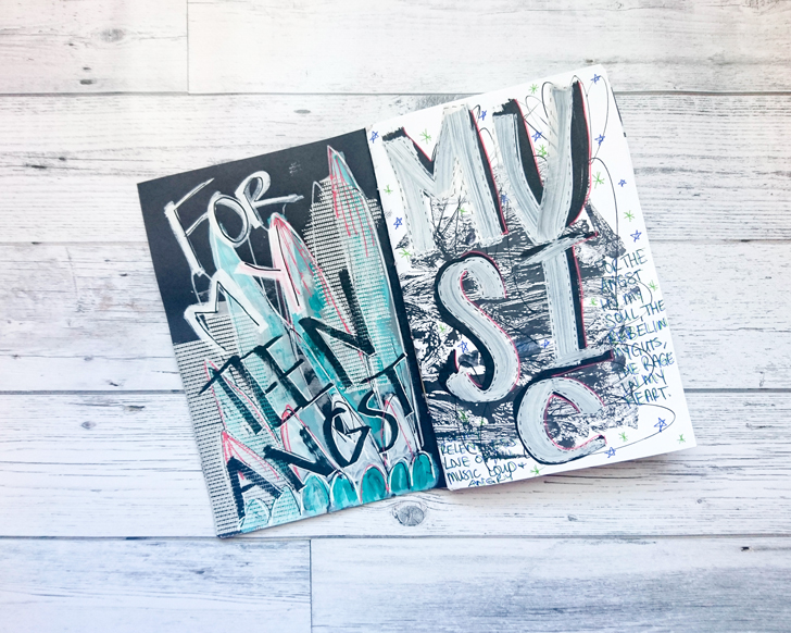 Even though I’ve been a bit silent online, I’ve still been creating and making in the background. This was the last week of Season of Music for Get Messy, and I had the best of intentions to stick with this season. Alas, a bunch of things happened all throughout the season that took priority – birth of a new niece, household projects, some freelance design work, family members getting sick. Enough things happened that I only managed to make about 6 pages this whole season – in the first ten days!