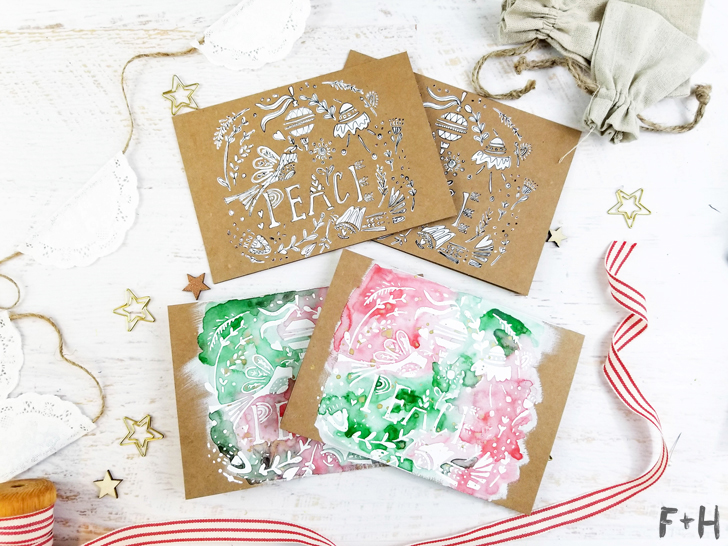 Check out the video below to watch how you can use one stencil in two different ways for some quirky holiday cards everyone on your list is sure to love!
