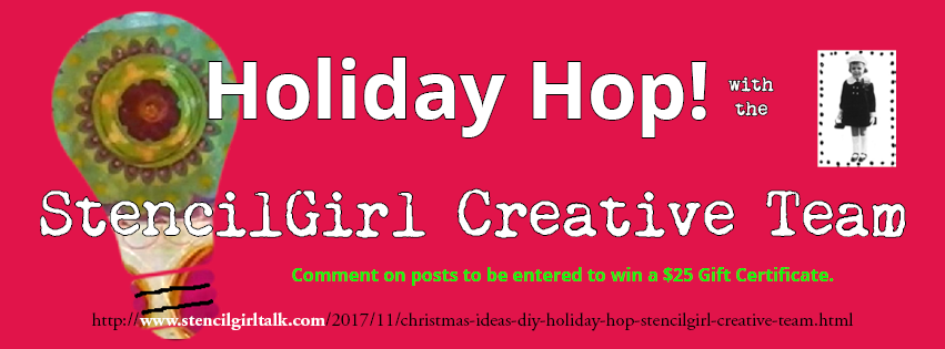 Our Creative Team members made over a dozen different projects just to whet your appetite for the most wonderful time of the year! While you are busy oohing and aahing over your folk art holiday cards, make sure to take a moment to leave a comment on each blog and you’ll be entered to win a $25 StencilGirl Gift Certificate! Here are links to all the fantastic, magic, merry, holiday projects:
