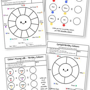 - Watercolour or tempera paint makes the colour mixing sheets extra hands-on and genuinely exciting