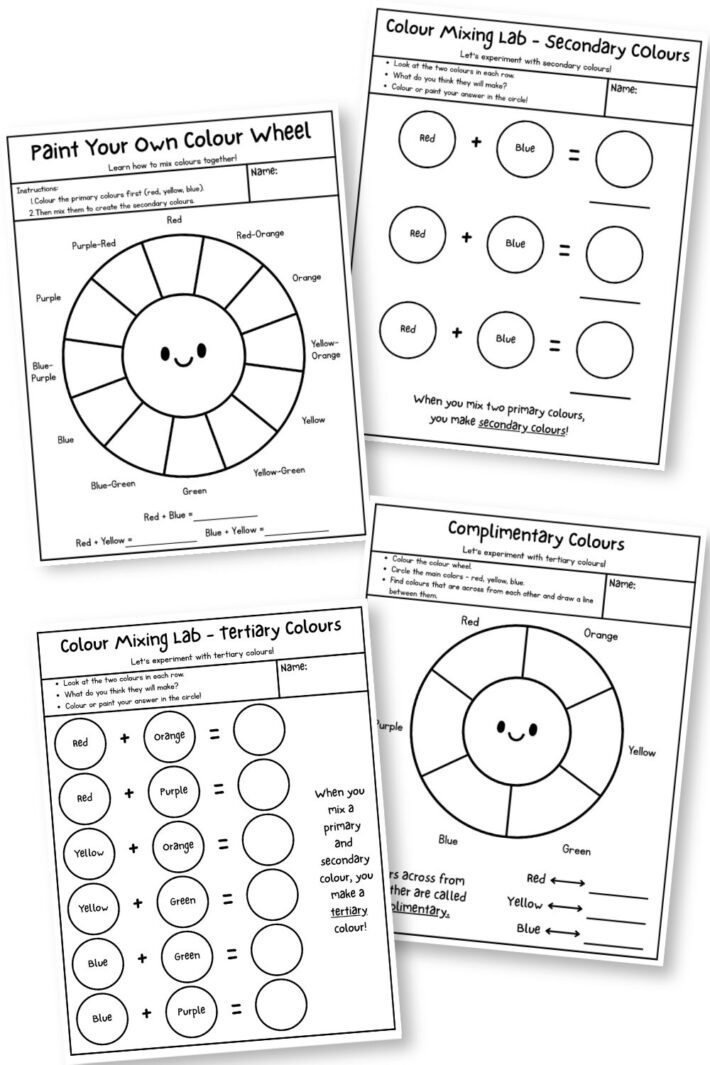 This color wheel printable is also a great starting point if you want to keep exploring colour theory together. Pair it with some free painting time and let kids experiment on their own after they finish the sheets.