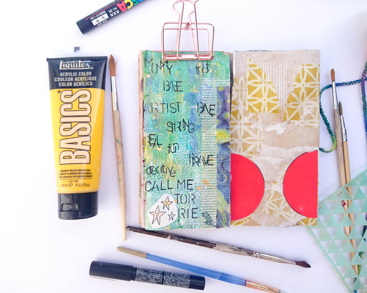 This paper bag journal is so, so fun to work in. The wrinkled texture of the paper has added so much interest to all my paint without even having to try that hard. I also am finding that the quality of the paper bag pages really is better for acrylic rather than watercolours. The paper is so absorbent and yet so brown that it sucks up the colours too much. Which is cool with me, because I love any excuse to work in acrylics!