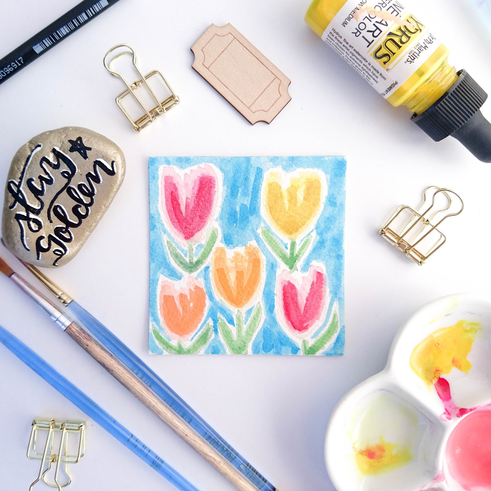 Since we have already started the new month of #foxandwatercolour, I thought it would be fun to share my entire 30 days of paintings from April all together! All of my daily sketches were just 3″ x 3″ in size – I love working in a tiny format! It’s challenging but also sort of freeing, because there isn’t as much space to cover.