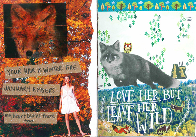 I loved using real birch bark on this page to make the tree trunks. It’s been in my stash for a couple of years & once I heard it was a woodland zine we were making, I knew it had to be in there. Especially if this was headed for Jules